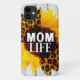 Mãe Vida capas de iphone de girassol Malha fundo de madeira branca com girassol (impressão-leopardo e pétalas amarelas) lê, "vida-mãe" Russo, único, fofo, telefone da mãe. Cite Life Boutique.