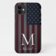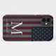 Estojo com a bandeira americana patriótica em um design de malha metálica abstrata para proteger o seu iPhone. Este design apresenta a bandeira dos Estados Unidos da América (EUA) em um fundo de malha metálica com a bandeira desbotada para mostrar a textura do metal. Você pode personalizar este design com seu nome e iniciais.
