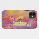 A parede, na design original de ZoeSPEAK neste inspiracional caso do iPhone 11, é uma velha parede vermelha de tijolos com um mural no stucco que está se desfazendo. O mural é uma fotografia de nuvens inchadas no pôr do sol, todas rosa e amarelo claro no topo contra um céu azul profundo. A mensagem é deixar o sol entrar.