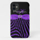Caixa roxa e preta moderna Monogrammed da marca da case mate do iPhone 5 do teste padrão da listra do impressão da zebra do brilho do FALSO mal lá com fita IMPRESSA e o broche IMPRESSO da jóia. Personalize-a para adicionar seu conhecido, a inicial, ou o outro texto. Se você precisa o auxílio, envie por correio electrónico niteowlstudio@gmail.com.