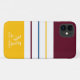 Este gabinete do iPhone 11 original apresenta um padrão listrado colorido em cores de queda de tendência: roxo de amoreira e amarelo âmbar. Personalize-o com seu nome e monograma em branco no fundo.