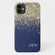 Faísca azul Dourada e Marinho e brilhando com brilho esfregando o nome do monograma de metal e o telefone inicial. Isto faz o doce e perfeito aniversário de 16 anos, casamento, chá de panela, aniversário, chá de fraldas ou festa de solteira presente para alguém que ama luxo de luxo e estilos quíticos.