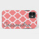 Capa Para iPhone 11 Nome personalizado em Trellis marroquina rosa