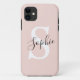 Capa Para iPhone 11 Nome Personalizado Moderno Monograma Pastel Rosa