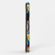 Essa capa de telefone tem um design Bauhaus de diferentes grupos de círculos concêntricos em cores dos anos 1970.