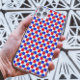 Quando o clássico retrô vintage inspira a arte moderna, este padrão de quadrados geométricos vermelhos e pretos é inspirado na era vintage e no estilo de tabuleiro de xadrez, com um toque de geométricos abstratos de Memphis em um padrão estético para formar um padrão decorativo elegante e sofisticado composto por quadrados geométricos e linhas em vermelho, preto e azul para dar um padrão único elegante e sofisticado.