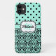Capa Para iPhone 11 Padrão Bolinhas de Damasco Monograma Turquesa