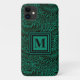 Adicione a sua inicial para personalizar esta capa de telefone esmeralda verde monogramada. Um monograma quadrado simples de na moda fica sobre um padrão foliar botânico preto.