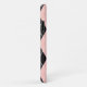 Padrão de árgyle preto, cinza e monograma cor-de-rosa personalizado caso iPhone 11 personalizado. Forma de diamante em preto, cinza e pincel cor-de-rosa, linhas diagonais brancas de interposição e um diamante com suas iniciais.