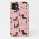 Capa Para iPhone 11 Padrão de vinho do Dachshund rosa