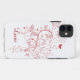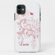 A delicate floral swirl in pink with pink and red butterflies on a white background makes a pretty case. Add your own name easily