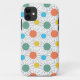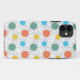 Esta capa de telefone tem um design moderno século médio de círculos com linhas atrás em laranja, amarelo, turquesa e verde.