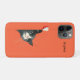 Playful illustration of a curious black and white cat peeking from the side with sharp red claws and an expressive face, set against a bold orange background. This eye-catching iPhone case design blends humor, color, and feline attitude, adding personality and protection to your device.