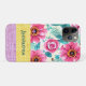 Pretty graphic texture in purple and mustard with pink floral and your name.