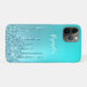 Esta design de capas de iphone bonito apresenta faux aqua mint e turquesa gotejando textura metálica brilhante e elegante fonte de caligrafia.