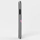 Uma capa de telefone com um cão de desenho vestindo óculos, o cachorro é preto e branco com orelhas rosadas e óculos cor-de-rosa, o fundo é listras pretas e brancas.
