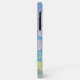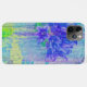 Essa capa de telefone lança uma colagem digital composta por várias camadas de varreduras de fotografias, pinturas e texturas. Um aglomerado de flores violetas azuis senta sobre um fundo abstrato em tons de lavanda, verde, roxo e tons de azul.