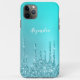 Esta design de capas de iphone bonito apresenta faux aqua mint e turquesa gotejando textura metálica brilhante e elegante fonte de caligrafia.