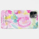 Capa Para iPhone 11 Pro Max Monograma floral de cor verde-rosa moderno