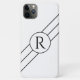 Capa Para iPhone 11 Pro Max Monograma Preto em Círculo, Linhas Diagonais Branc
