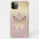 Chic, moderno, único, elegante, capa de iPhone rosa dourado com brilho e borboleta dourada, com iniciais monograma.