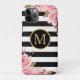 Capa Para iPhone 11 Pro Monograma das faixas planas, pretas e brancas
