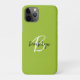 Esta elegante capa de telefone personalizada apresenta um monograma e primeiro nome em modernos roteiros preto e branco sobre um fundo de verde limão de tendências.