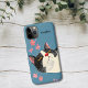 Charming illustration of a relaxed black and white cat lying peacefully among pink flowers on a blue background. This cute and artistic iPhone case combines calm colors and playful details, offering both personality and reliable phone protection.