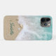 Esta capas de iphone divertida e divertida é perfeita para o Verão, já que é personalizada com o seu nome num fundo de areia de praia, ondas turquesas oceânicas, conchas, areia dólares e estrelas.