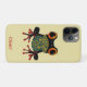 Colorful illustration of a tree frog with striking orange eyes, red feet, and a patterned green body on a light beige background. The bold and detailed artwork creates a fun and energetic design for your iPhone case, perfect for nature enthusiasts and lovers of tropical wildlife.