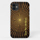 Uma imagem fractal, tipo estrela, a preto e amarelo. Adicione seu próprio texto.