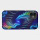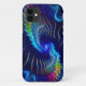 Uma imagem fractal com tons azuis com realces vermelhos, verdes e amarelos sugerindo pele de dragão.