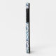 This iPhone case is adorned with a hand drawn watercolor-style scallop pattern in dusky coastal colors, featuring folk art sea turtles, ocean waves, kelp and sea drops. Artwork and design by Chelsea Condon.