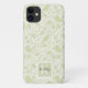 Adicione nome e inicial a este cobrir iPhone com elegante pássaro verde neutro e padrão floral.