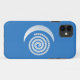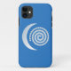 Lua crescente formando e prateada acompanhada de uma roda de luz espiral, sobre um fundo azul escuro profundo