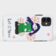 Bonito bonitão de chapéu, mitenes e cachecol. Flocos de neve cor-de-rosa sobre fundo branco. O ditado pode ser mudado como desejado.