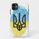 Identidade ucraniana. Para todos os ucranianos. O símbolo Tryzub sobre um padrão de impressão digital da bandeira da Ucrânia.