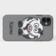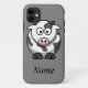 Adicione seu nome a essa capas de iphone de vaca de desenho animado. Este simples design preto-e-branco é muito fofo, com uma cinza de fundo, para o fazer realmente sobressair da multidão.