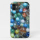 Fotografia macroscópica de muitas bolas de vidro que repousam em água rasa, dentro com uma panela de alumínio esmagada.
