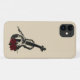 Desenho de um violino com dois longos rosas no fundo de uma cor creme.