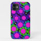 Flores digitais roxas e cor-de-rosa coloridas em fundo de bolinhas.