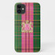 Capa Para iPhone 11 Xadrez rosa e verde refinados monogramas