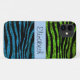 Padrão elegante, na moda e sofisticado de zebra em brilho azul e verde. Presente moderno e moderno, perfeito para o amante da impressão animal em sua vida. Personalize adicionando o seu nome, apelido, monograma ou iniciais.
