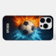 Um design com tema de futebol que exibe uma bola de futebol a irromper por uma colisão de fogo e gelo. Você pode personalizar este design com um nome ou qualquer texto de sua escolha. Lembre-se de excluir o texto antes de adicionar o seu.