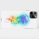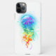 Água-viva grande, iridescente, desenhada artisticamente, brilhante, com longos tentáculos em branco, pintada sobre fundo de aquarela multicolorido. Água-viva arco-íris.