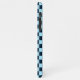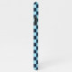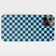 A blue and black checkerboard pattern with evenly spaced squares. The repetitive design creates a sense of symmetry and optical illusion.
