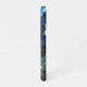 Fabulosa, brilhante, azul e amarela, borboleta noturna sobre fundo escuro.