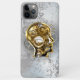 Cabeça conceitual, mecânica, humana com manômetro antigo e engrenagens metálicas contra fundo industrial das cinzas. Estilo Steampunk.