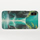 Uma pintura atordoante e vibrante de uma cascata de cascata em uma piscina clara. A água é renderizada em tons gritantes de lacre branco e brilhante, contrastando com as rochas escuras e amordaçadas que formam os penhascos de cada lado. Folhagem esmagada, verde e videiras delicadas com flores amarelas pendem das bordas rochosas, acrescentando a sensação de um santuário natural oculto. A água no fundo das quedas é uma tartaruga refletora, com ondulações e um fino spray de névoa captada no ar. O estilo é dinâmico e expressivo, com foco na captação do movimento e da luz da água.
