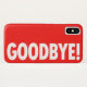ADEUS! é inspirado por uma celebridade que guardara uma capa de telefone similar quando se protegia dos paparazzi! Este é um caso engraçado que caracterize um fundo vermelho com pia batismal de Sans Serif e envie uma grande mensagem às pessoas que você não quer falar a anymore ou seus aborrecedores! ADEUS!